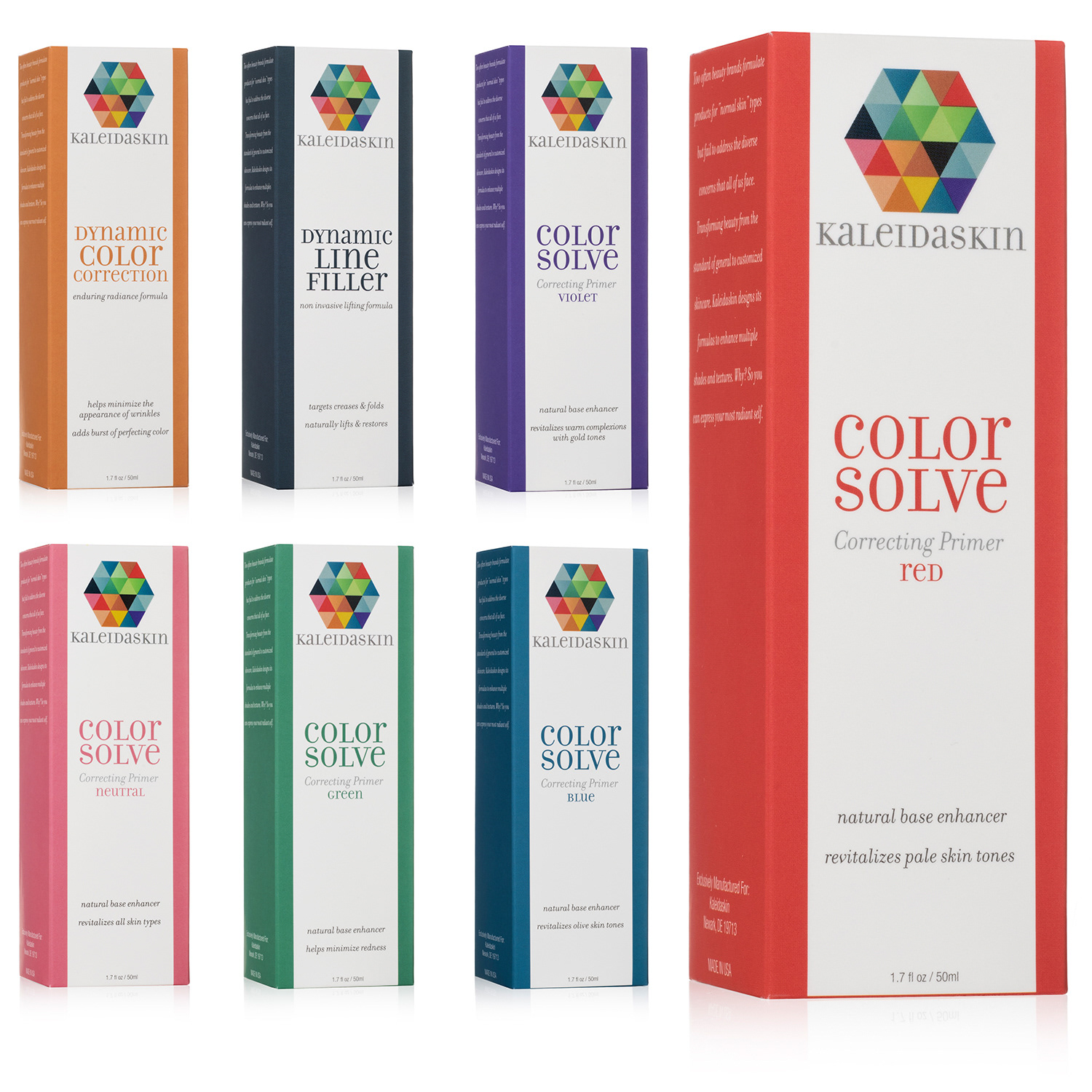 Kaleidaskin Skincare - Branding, packaging and labeling. All artwork created in Adobe Illustrator and Adobe Indesign. 4-color process with soft touch finish and spot UV.