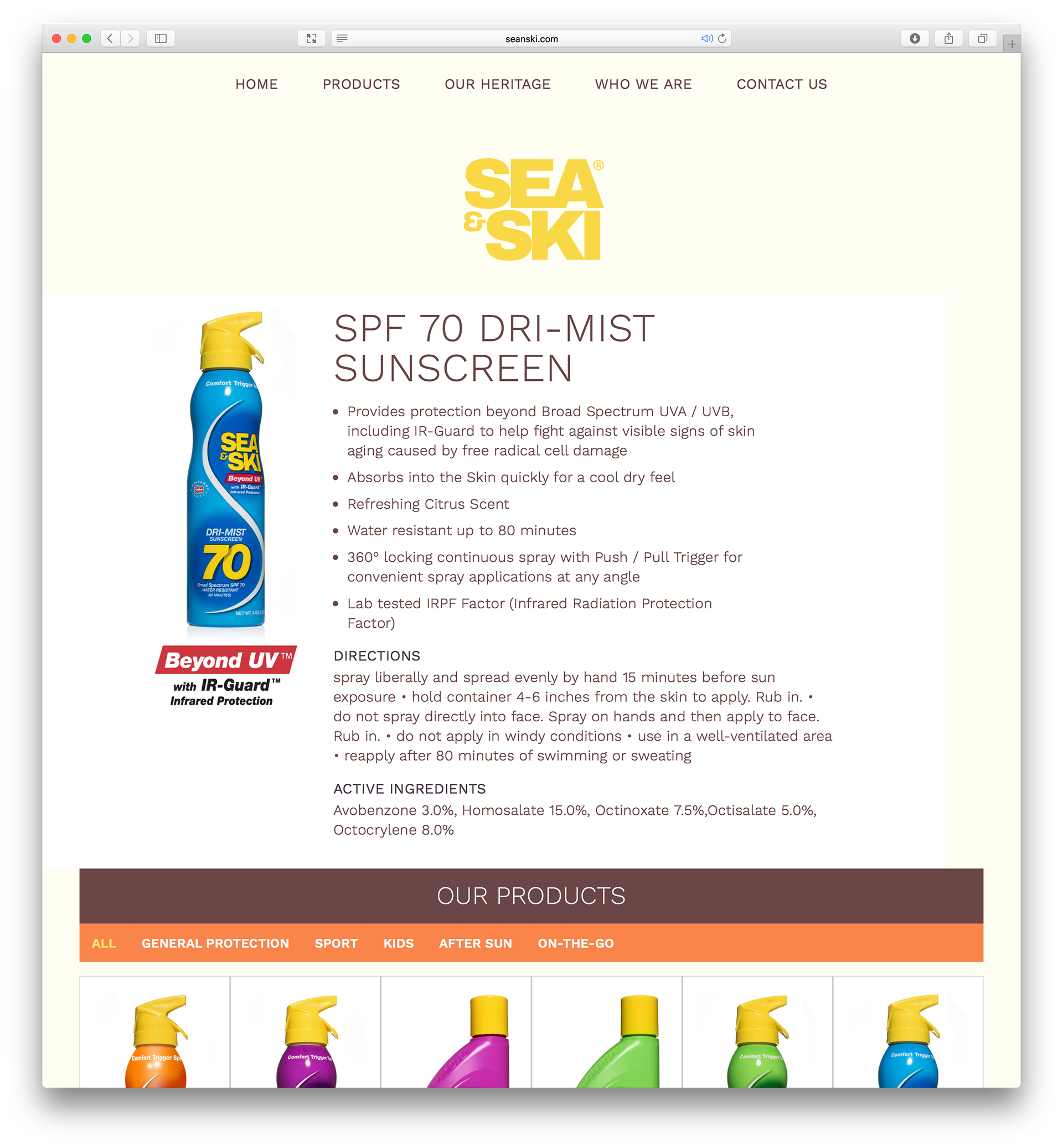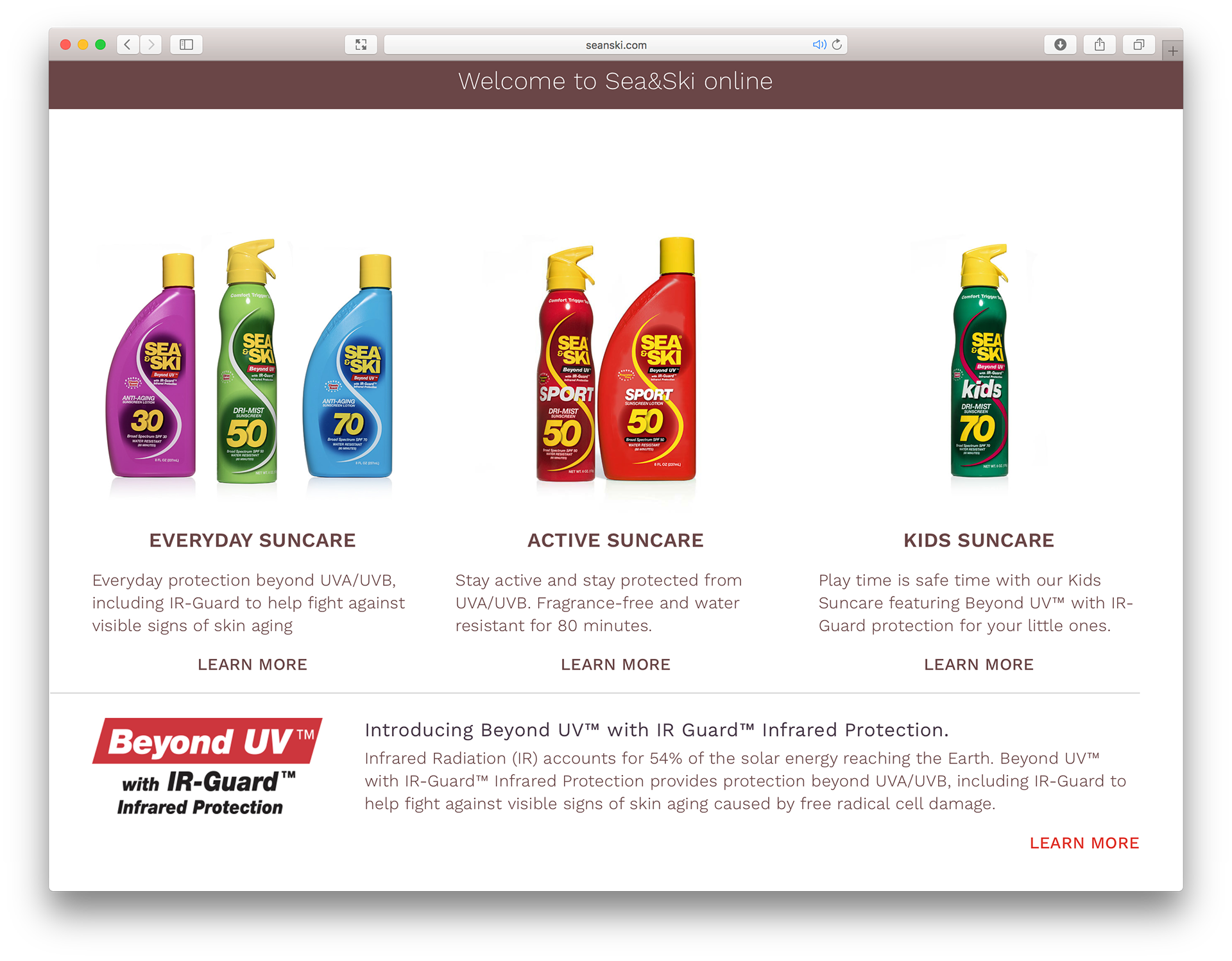 Responsive website design and development for Sea&Ski Suncare.