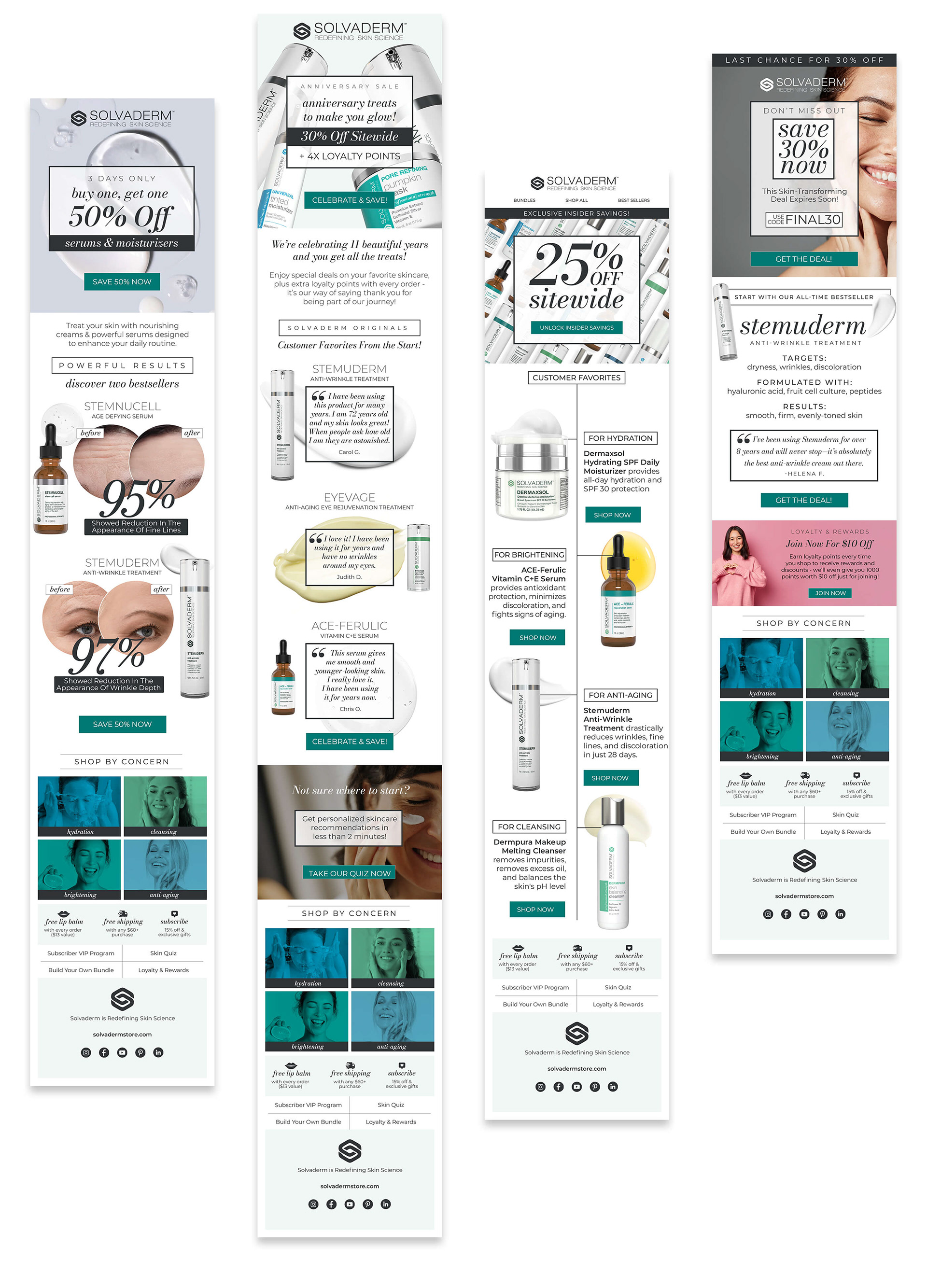Cross section of Solvaderm email designs to correspond with the site refresh.