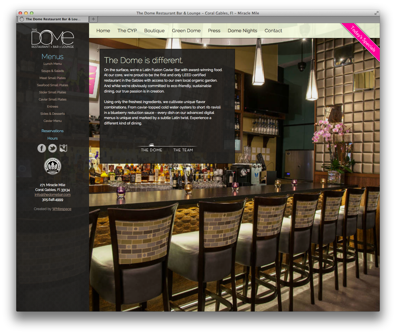 Branding and website development for The Dome Restaurant, Bar & Lounge in Coral Gables, Florida.